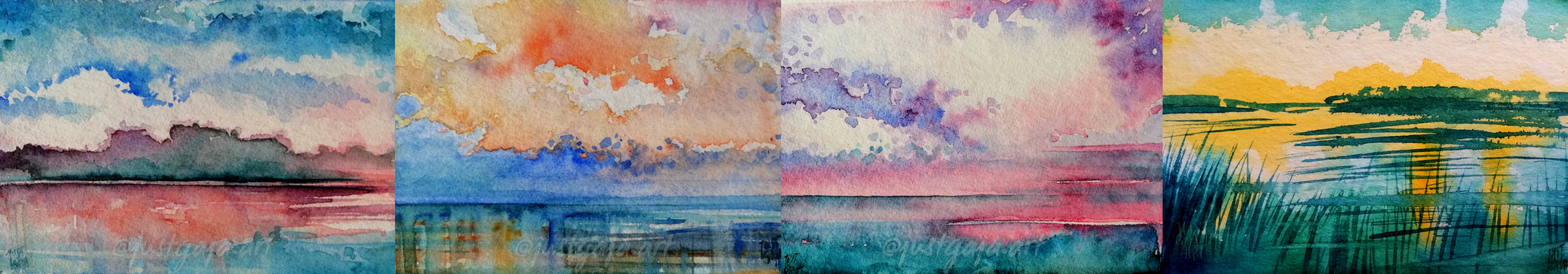Elk abstract landschap begint met observeren. Ik loop door de polders, ik kijk naar de lucht, ik let op hoe kleuren zich gedragen in verschillende lichtomstandigheden. Soms maak ik foto's, of snelle aquarel schetsen, maar vaker neem ik mentale snapshots mee naar mijn atelier.